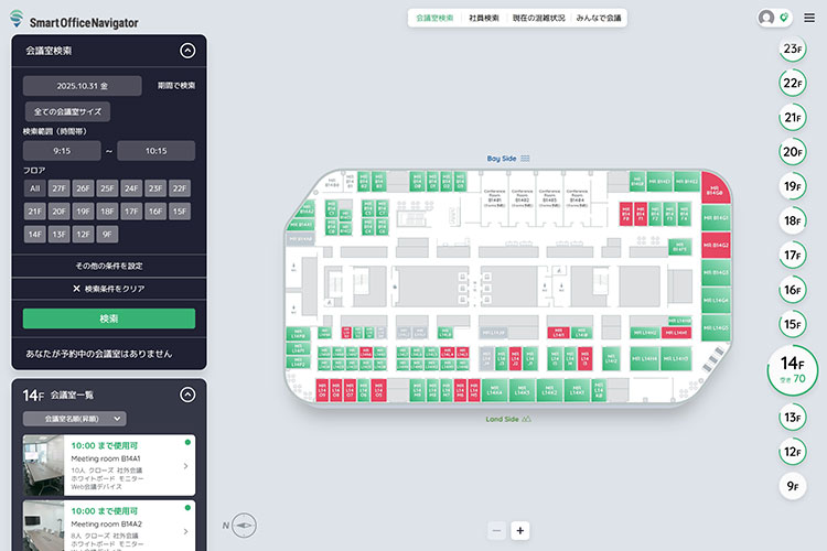 フロアのサイネージ画面から会議室の空き状況を確認(SmartOfficeNavigator)
