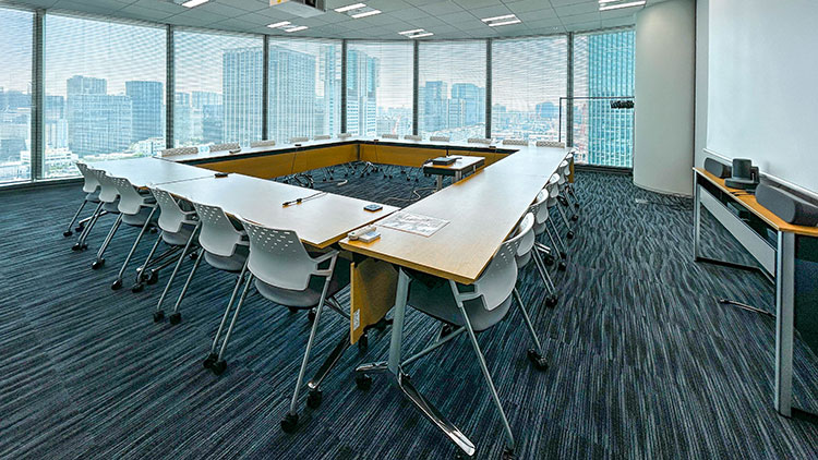 内田洋行は、空間構築とICTの双方にわたる知見を生かし、KDDI新本社のハイブリッド会議環境構築の技術支援に参画しました。KDDIの働き方や利用シーンに最適な構成を見出すため、複数の会議デバイスを対象に事前検証を実施。カメラ映り、音声品質・収音範囲・ハードウェア性能・応答速度などの定量評価に加え、操作性や多拠点接続時の安定性といった定性評価も行い、結果をもとに設置構成を決定しました。こうした現場起点の丁寧な検証プロセスが、高品質なハイブリッド会議環境の実現を支えています。