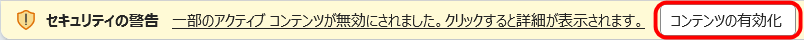 「セキュリティの警告...一部のアクティブコンテンツが無効にされましたた」が表示される