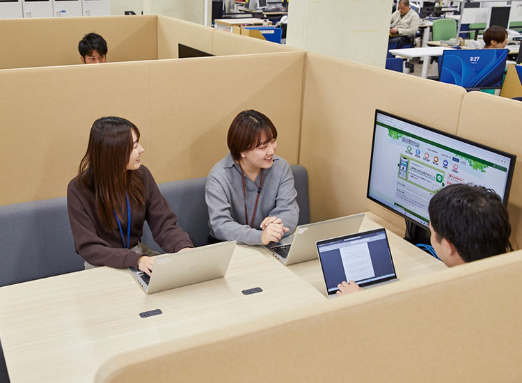 - フリーアドレスとミーティングスペースの拡充で、職員の働き方を改革