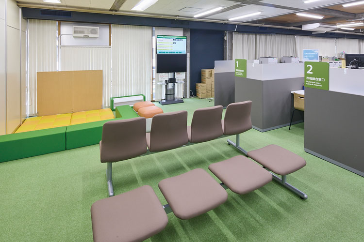 税3課の窓口を一つに集約させた「市税総合窓口」にはコンシェルジュを配置