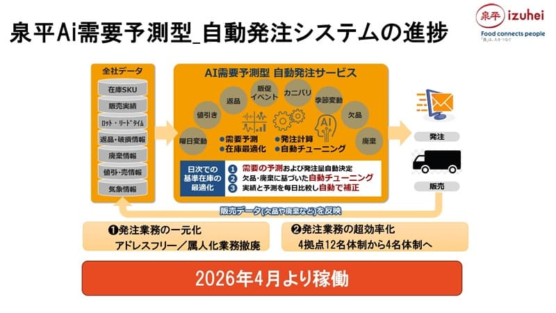 菊田様:ところで2026年4月に「AI需要予測型 自動発注システム」を稼働させるということですが、これは Artificial Intelligence のほうのAIですね?